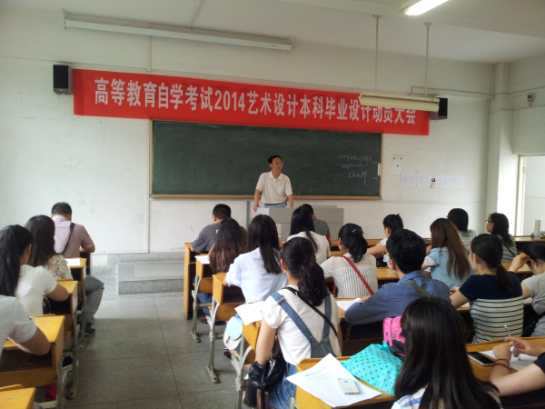 7月6日上午,安徽工程大学继续教育学院在四教212教室举行了“高等教育自学考试2014艺术设计专业毕业设计(论文)开题动员大会”,大会由院长朱尚玉主持。副院长柴方松,自考部负责人、艺术设计专业方向的指导教师以及来自省内外的47名考生参加了动员会。