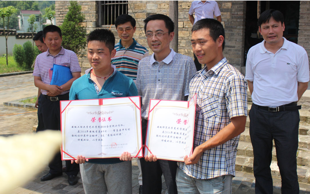 本次社会实践活动以“美好田园、五彩中分”为主题,依托大学生暑期社会实践活动平台,结合专业所学和中分村整体风格,遵循“因地制宜、就地取材、废物利用、挖掘内涵、彰显特色”的设计原则,在实践中锻炼,在锻炼中接地气、受教育。本次活动得到了当地村民的热情帮助和大力支持,受到了村民们的热烈欢迎一致好评,还受到了芜湖电视台、繁昌电视台等新闻媒体的关注。