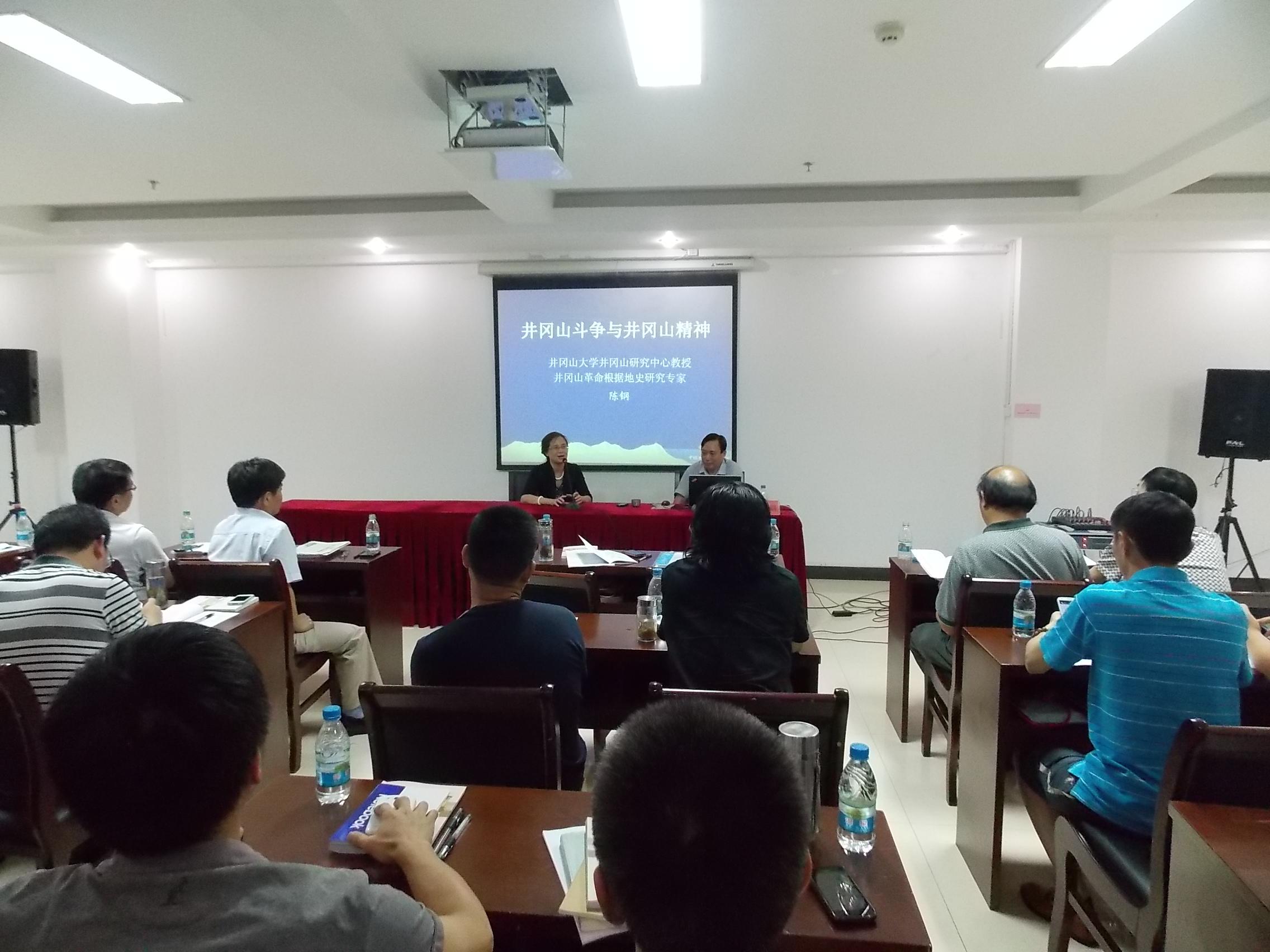 为期5天的专题研修安排十分严谨,来自中国井冈山干部学院、井冈山大学的专家、教授以及井冈山革命烈士的后代始终以井冈山精神教育为主线,以井冈山鲜活的革命历史为教材,在永新三湾改编纪念馆、井冈山革命博物馆等10多个现场教学点为学员们进行生动的现场教学,同时在一个教学点到另一个教学点的途中,井冈山大学培训学院的老师在车上安排相关专题讲解。在井冈山革命烈士陵园,学员们怀着无比崇敬的心情向烈士敬献花圈并沉思默哀。8月1日晚7:30-9:30,井冈山大学井冈山研究中心陈钢教授为学员们做《井冈山斗争与井冈山精神》的专场报告,并有针对性地发放了教材《井冈山精神与当代大学生》;8月4日上午,井冈山大学培训学院院长、井冈山培训研修基地主任李忠教授就学员们学习中遇到的一些问题进行了现场解读。此次研修活动采取了讲授式、体验式、参与式等多种形式,帮助学员们全面了解了井冈山革命根据地创建的艰难历程、历史地位和井冈山精神的内涵。