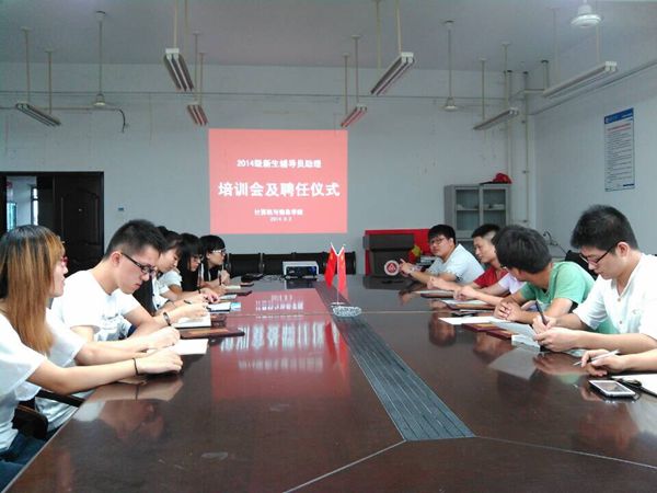 9月2日下午,计算机与信息学院召开辅导员助理培训会,院党委书记邬海量、院党委副书记周毅仁、辅导员及9名2014级新生班级辅导员助理参加了会议,周毅仁主持会议。