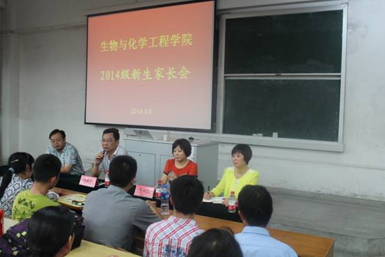 9月6日下午16:00,生化学院在2J107召开2014级新生家长会。学院院长徐建平,副院长薛正莲、陶玉贵,学院党委副书记章兵及14级新生辅导员一起与学生家长进行了面对面交流。会议由团委副书记胡云主持。