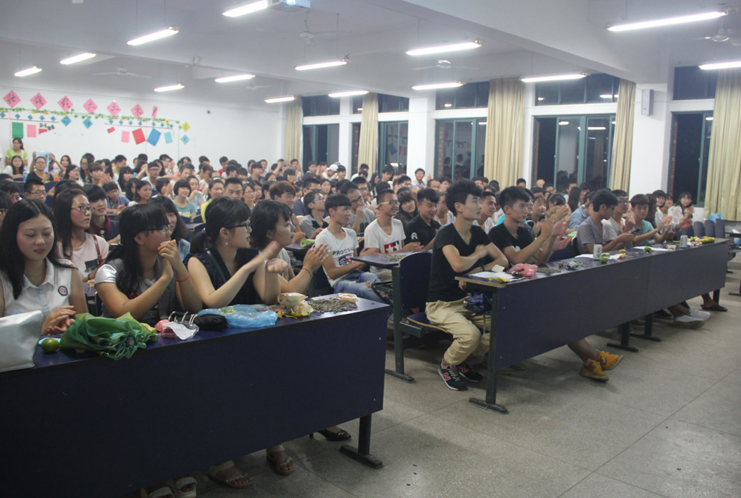 三台晚会,高潮迭起,精彩纷呈。搞笑励志的话剧《开学第一课》作为晚会第一个节目,开场就引发阵阵笑声和掌声。随后的节目形式除传统的歌曲、舞蹈、话剧外,还有脱口秀、乐器、相声和诗朗诵表演。其中广告专业学生的英文歌曲《Pretty boy》带动全场高歌、环艺专业学生的拉丁舞表演令人称赞,而动画专业学生的绝脱口秀《大话娱乐》引来全体师生的爆笑。节目形式多样、内容丰富,充分展示出艺术学院学生们多才多艺的特点。整个晚会现场,三个教室同学的呼声、掌声、笑声此起彼此,一阵高过一阵。伴随着所有同学合唱曲目《朋友》,中秋晚会在院学生会的组织下圆满落下了帷幕。