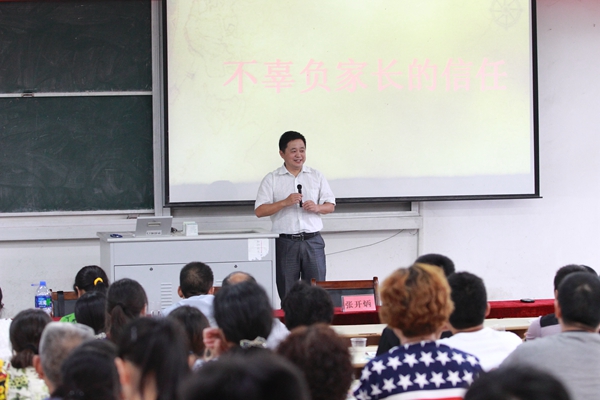 张开炳结合自己孩子今年上大学谈到对孩子的教育,他说家长对孩子的教育是从辅导到服务再到引导的过程,过去的成绩不代表未来,在让家长放心的同时也希望家长用心配合学校教育好孩子,只有学校和家长同心协作,培养孩子社会责任感,才能让孩子健康成长。