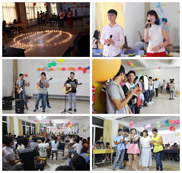 150支蜡烛组合成的红灯笼给了2014级新生们最美好的祝愿,也拉开了活动的序幕。文艺表演、趣味游戏、猜灯谜等项目吸引了众多新生,“抢凳子”、“夹橘子”等游戏调动了现场的气氛,而包含生活常识、逻辑思维知识等在内的猜灯谜给了新生们展示自己聪明才智的机会,在前两项预热的基础上,许多新生主动上台,展示自己的文艺特长,大家的主动参与,将活动不断推向高潮。