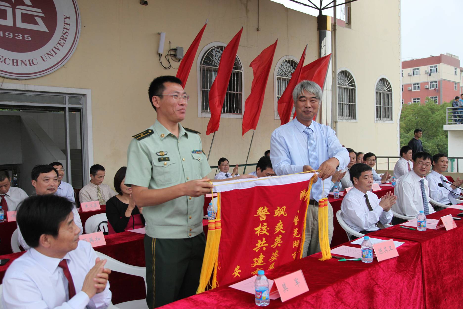 校党委书记陈其工代表学校向承训部队武警芜湖市支队赠送了锦旗。