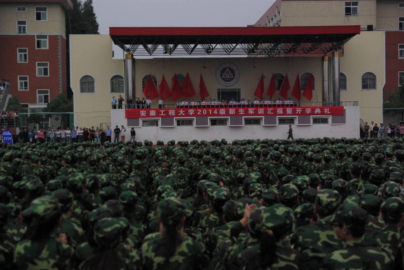 凉风习习,秋意盎然。9月19日下午,雨后的校塑胶运动场显得格外清新亮丽。2014级5500余名新生身着戎装意气风发地参加新生军训汇报暨开学典礼。校党政领导陈其工、刘宁、叶常林、汪奇燕、李震、苏国红、郭兴众,军训团团长、武警芜湖支队直属大队大队长莫军出席大会。大会由校党委副书记苏国红主持。