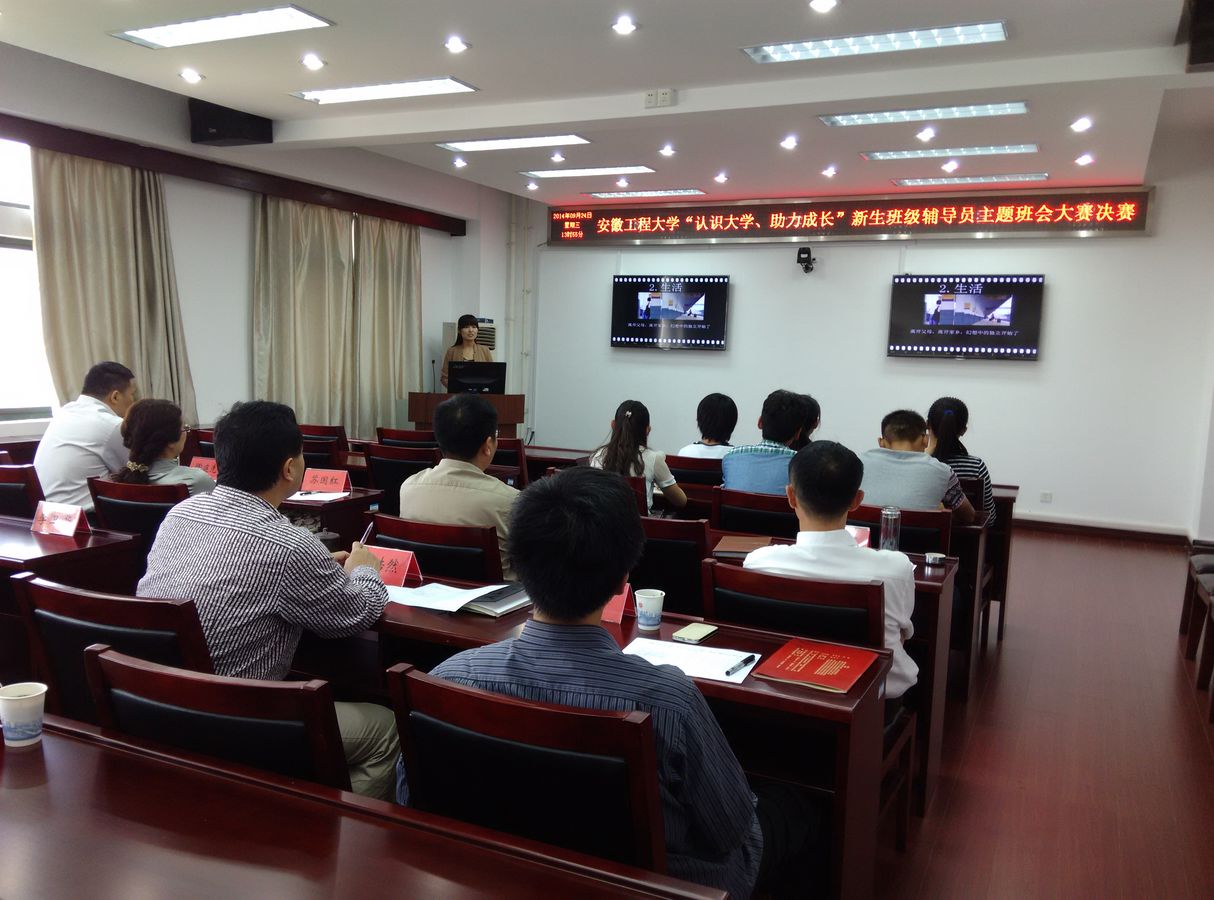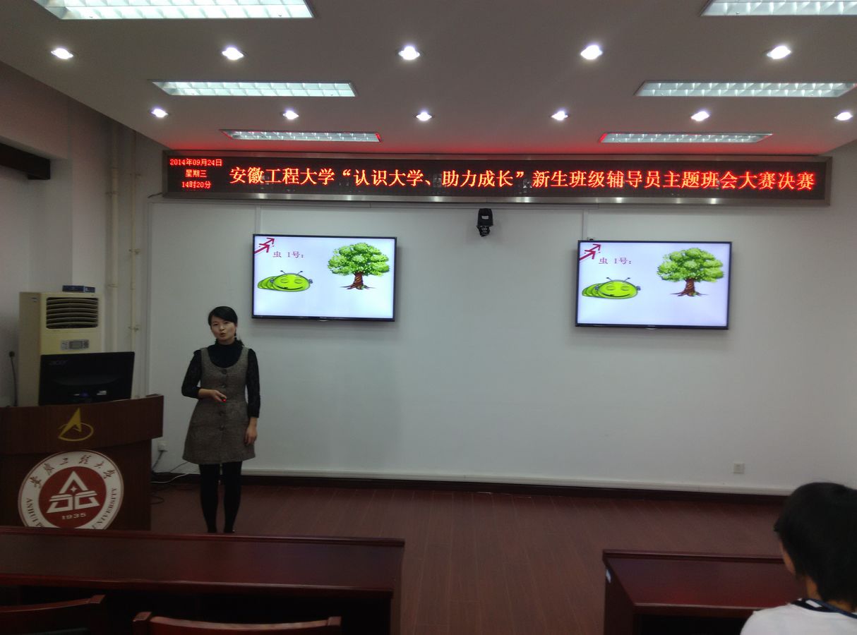 此次主题班会大赛分为初赛和决赛两个阶段。初赛对15件参赛的主题班会PPT进行了评审,选出6件作品进入决赛。决赛采取主题班会现场展示的方式进行。决赛中,各位辅导员紧密围绕着认识大学、助力成长的主题,辅以精心制作的PPT,阐述了大学要学什么,学习方法有什么变化,专业学习与综合素质提高的关系,大学生涯规划与目标的确立等方面内容。经过辅导员的精心准备,本次参赛的主题班会有的说理透彻,有的形象生动,有的互动启迪,有的视角独到,有的结合专业,内容翔实,精彩纷呈。经评委评审,纺织服装学院辅导员毕亚琴设计的班会《助力目标、成就梦想》和电气工程学院辅导员丁雨晴、王玲玲设计的班会《新起点、新阶段、新梦想》获得一等奖,建筑工程学院新生辅导员团队设计的班会《致我们即将进入的大学》等4件作品获得二等奖。
