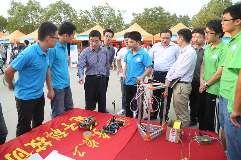 各类学生社团展台前人头攒动,精彩纷呈。爱乐社现场办起了音乐会,轮滑协会组织会员现场表演。星火义务支教社、爱心社等公益类社团以图片形式将开展的各类公益及志愿服务活动进行展示,悬挂来自社会机构和受帮助个人授予的锦旗和感谢信。工程训练创新协会的无碳小车、服装协会炫酷的模特秀、动漫协会的各种角色秀、建筑协会的建筑模型展示等等都吸引大批同学驻足观望。由电子科技协会同学研制的四旋翼航拍飞行器在现场进行高空巡航和拍摄,立刻引爆全场,大家纷纷拿出手机拍照发微博发说说来记录这一瞬间。