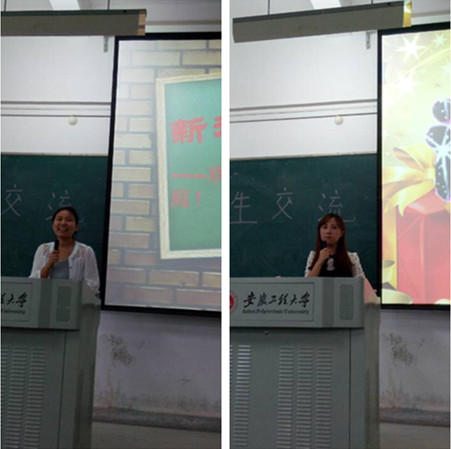 9月23日下午,外国语学院两场分专业优秀学生报告会分别在6教311和6教306同时举行。参加报告会的优秀学生代表有:英语专业袁鹤芹、张陈颖、费雁鸿、唐再飞四位同学;日语专业尹婷婷、谢婷、李晴三位同学。全体2014级新生参加了报告会。