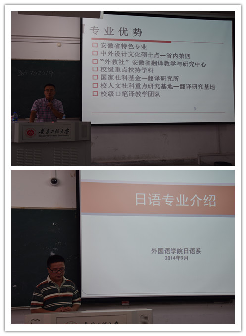 为了让新生更深入的了解外国语学院的基本情况及自己所学专业,制定学习计划,尽快适应大学阶段的学习生活, 9月24日下午,根据学校的统一要求,外国语学院在6号教学楼举行了2014级新生专业介绍会,英语和日语专业共计161名新生到场参加。
