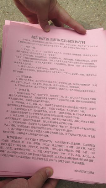 9月24日,我校辖区派出所城东新区派出所社区民警余毅等一行四位同志,来到学校学术报告厅的计算机与信息学院新生入学教育现场,给同学们发放宣传单,提醒同学们警惕和防范电信诈骗、网络诈骗和其他违法犯罪行为的危害。