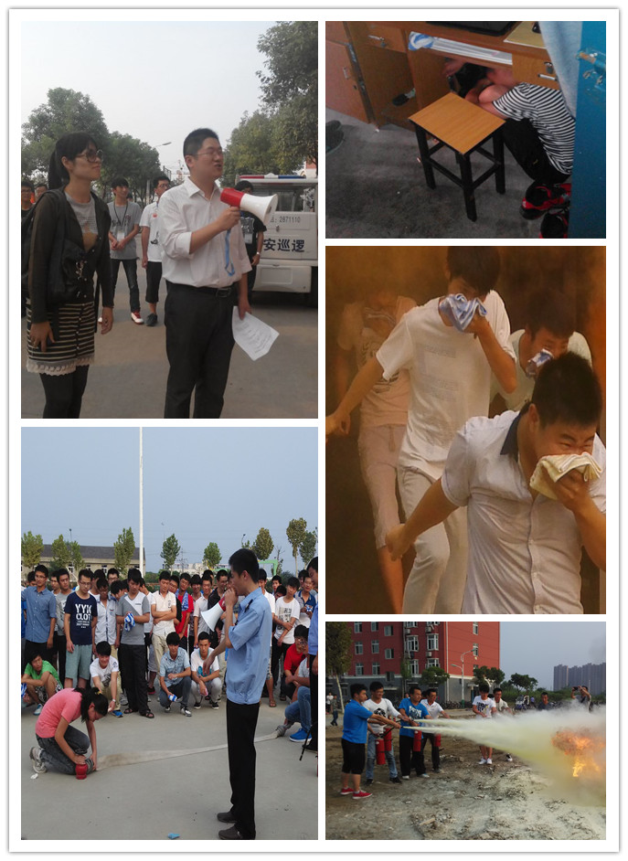 在校保卫处的大力支持下,学院成功举办了应急疏散和消防演练。随着现场指挥的哨声响起,9个班新生在安全疏导员的引导下,3分钟内有序地从宿舍楼撤离完毕。随后在保卫处老师的指导下,学生代表进行了灭火演练,其余同学列队观摩。