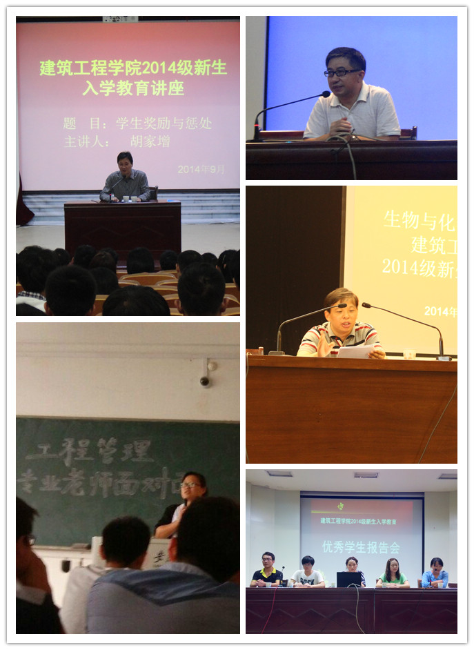 “地震来了,不要慌,快避震”,这是建筑工程学院新生安全消防演练的现场实况;“劝君惜取少年时”、“仰望星空,脚踏实地”、“做一个对社会有用的人”,这是“我的成长之路——博士与新生面对面”活动中三位博士与同学们分享的感悟;“大学是一个崭新的起点”、“激发自主学习的动力是兴趣”、“用真诚传递中国魅力”,这是“奋斗的青春最美丽——学长学姐伴我行”优秀学生报告会上学生代表的发言。