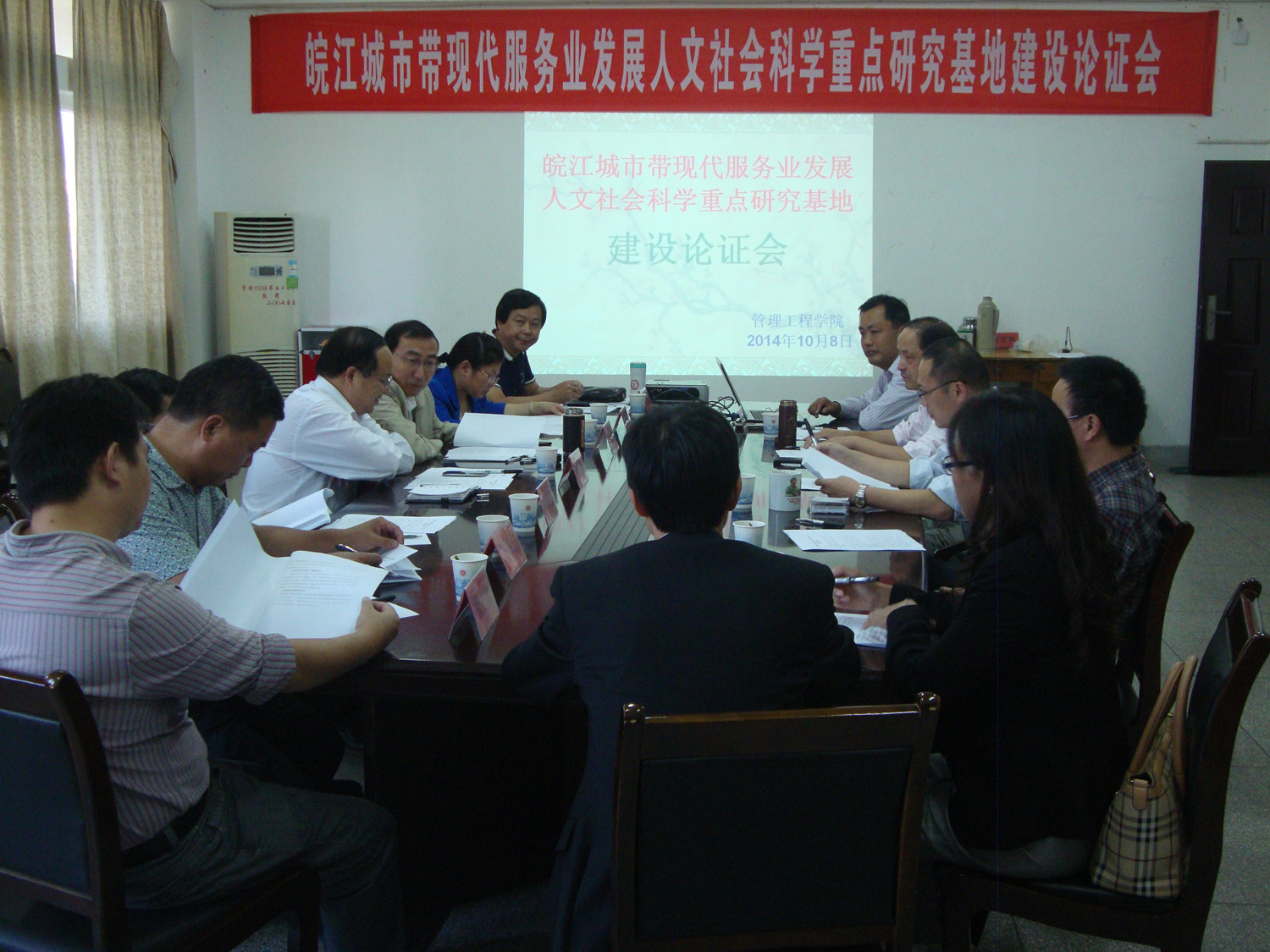 为进一步明确基地研究定位、推进基地科学研究的社会化,10月8日下午,管理工程学院邀请来自政府和行业部门的七位专家共同论证皖江城市带现代服务业人文社科研究基地的建设方案。校党委副书记苏国红教授会见了与会专家,管理学院党政负责人和部分教师参加论证会。论证会由学院党委书记汪张林教授主持,院长王忠群教授致词,院党委副书记、副院长何朝林教授从建设目标、研究内容、拟选课题和建设路径等方面汇报基地建设方案。
