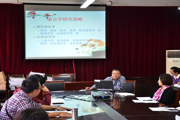 两位副教授结合自己博士阶段的学习和研究,与全院教师分享了各自的学习成果。首先,黄焰结以“外语学科科研的拓展与方法论---以新月派诗歌翻译研究为例”为题介绍了外语学科主要研究领域中其他学科的侵入现象,强调了外语学科研究中跨学科拓展的重要性。他结合自己的博士论文写作经历与大家分享了论文选题和做题中“圈地”和“挖井””的方法。选题应在个人知识结构的基础上,兼具“唯美”和“唯用”的原则,体现选题的意义和创新。做题的过程中应以文本为中心通过阅读相关学科和专业经典文献奠定理论基础。最后,黄焰结结合自身的经历和大家交流了他在项目申请和论文写作中的心得。