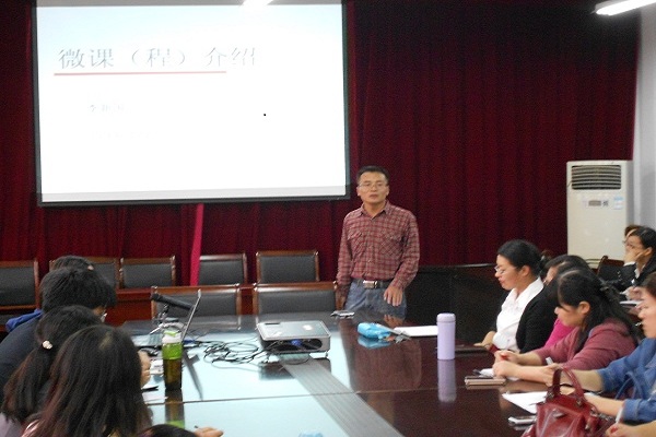 2014年10月9日下午,外国语学院在学院会议室举办微课设计与制作专题讲座。本次讲座由院长刘进主持,专攻“现代信息技术与外语教学”研究的英语系副主任李新国主讲,外国语学院全体教师参加了本次讲座。