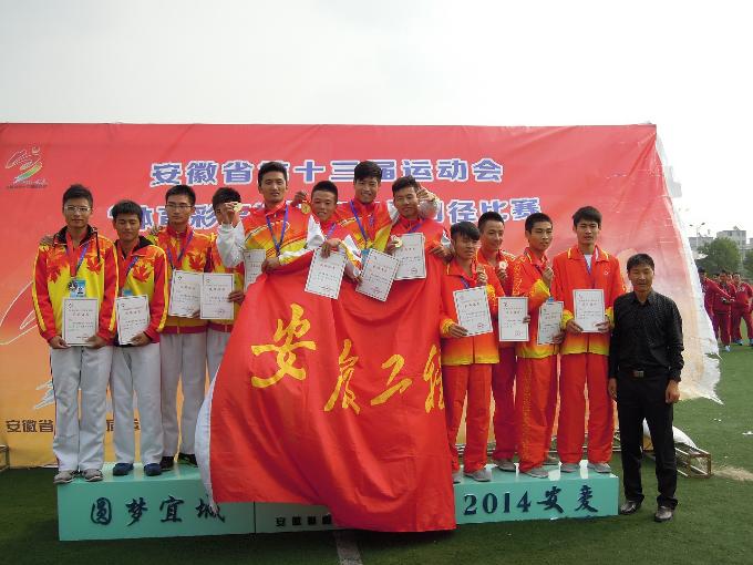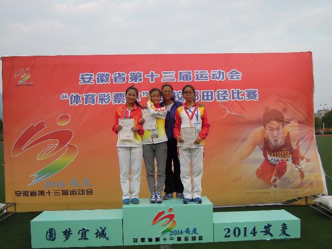 由安徽省人民政府主办,省体育局、省教育厅、安庆市人民政府承办的安徽省第十三届运动会高校部田径比赛于2014年10月13日在安庆师院顺利闭幕,全省58所高校约1400名运动员参加比赛,我校田径代表队在领队文才新、教练员颜小燕、王红涛、孙正老师的带领下,努力拼搏,体现出了良好的竞技水平和精神风貌,获得体育道德风尚奖,最终夺得4金1银2铜,总分151分,并以四次打破三项省大学生运动会纪录的傲人战绩载誉而归。