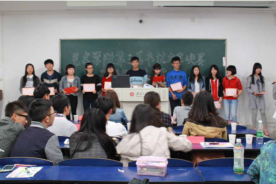 10月13日晚,艺术学院在6教111教室举行第三届大学生书法大赛决赛。本届大赛共160余名学生报名参加,经过初赛的严格选拔,共有36名选手进入决赛。