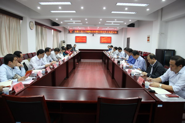 10月18日下午,由人文学院主办的“安徽工程大学MPA导师聘任暨培养方案研讨会”在A座1121会议室隆重召开。校长刘宁、校纪委书记汪奇燕、副校长李震,MPA校内外导师、研究生部及人文学院负责人出席研讨会。研讨会由汪奇燕主持。