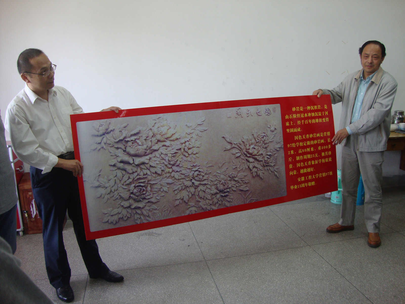联谊会结束后,校友代表为学院赠送了砂岩画——“国色天香”,表达了对学院和老师的感恩之情。