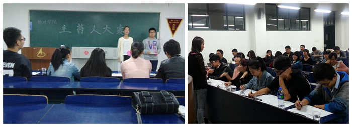 10月18日,数理学院第三届主持人大赛在5教402顺利举行,来自我院2014级的32名同学参加了比赛,经过三个环节的激烈比拼,最终,来自统计141的李小萌和汪雯琦两名同学荣获一等奖。整场比赛由文艺部胡叶敏同学主持。