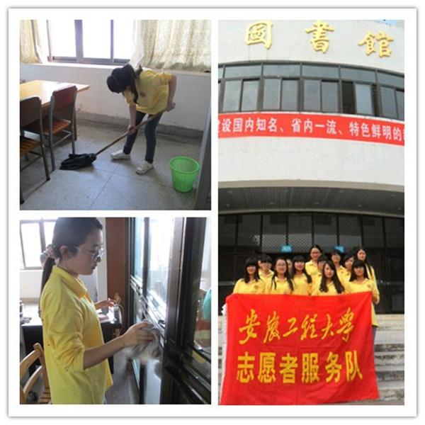 9月24日下午,人文学院“阳光之旅”志愿者服务队前往学校东、西图书馆,开展卫生清洁活动。9月30日至10月7日,人文学院“暖途”青年志愿者服务队在芜湖火车站开展为期八天的志愿服务活动。2014年10月18日开始,人文学院“阳光之旅”青年志愿者服务队为第六届伟星社区运动会提供为期四天全程志愿服务。