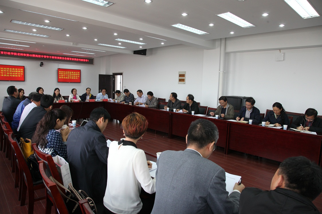 10月22日上午,由国家教育行政学院杨艳玲、丁月牙、吴宁三位老师带队,国家教育行政学院第43期高校中青年干部培训班调研团来我校调研交流。