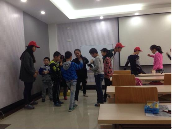 活动当天,志愿者们到达教室后,发现小朋友们也早早的在位置上坐好,期待着趣味活动的开始。本次活动包含“米”字游戏、跳皮筋和乒乓球三项内容,小朋友们根据自己喜欢的项目选择分组进行活动。本次活动内容设置充分考虑了小朋友们的实际情况,目的在于增加活动自身的趣味性,更好的调动小朋友们的参与热情。整场活动充满了欢声笑语,气氛热烈。最后,全场小朋友分组进行了一场名为“萝卜蹲”的趣味比赛。