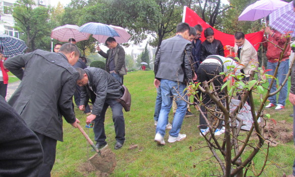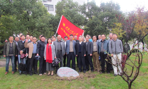 植树立碑阶段。食品90级校友和食品专业部分老师一起,迎着这秋日的喜雨,来到生化楼东侧的草坪上,亲手种下一颗颗苹果树,并且立下石碑。据校友介绍,之所以选择种苹果树,这有着深刻寓意。首先,苹果被视为智慧之果,寓意着安徽工程大学学子的聪颖才智;其次,苹果树的生长习性是四年正式开花挂果,寓意安徽工程大学学子在学校领导和全体教师精心培育下,通过自己的努力完成了大学四年的学业,开花结果。返校学子们通过20年的奋斗,取得的骄人业绩激励着在校学子努力学习,打好基本功,20年后也必将硕果累累。