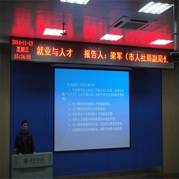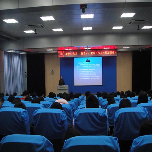 梁军首先结合芜湖产业现状分析了当下芜湖市就业的新机遇与新挑战,重新定位了人才观。随后,他介绍了芜湖促进就业工作的主要任务、推动创业工作的主要做法以及芜湖针对高校毕业生的人才政策。梁军引用习总书记在全国人才工作会议上的重要讲话,并要求大学生应对就业问题应当清醒认识、准确定位、明确方向,先就业再择业。