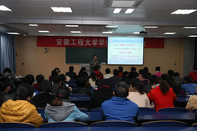 11月14日上午,江西理工大学冶金与化学工程学院院长助理饶先发应邀来我校为全体辅导员作《从一千到“六千万”——如何做好高校辅导员工作》的主题报告。
