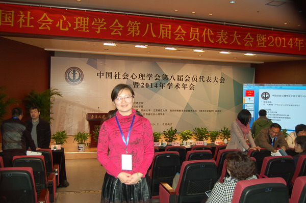 11月14-16日,由中国社会心理学会主办、南京大学社会学院承办的“中国社会心理学会第八届会员代表大会暨2014年学术年会”在南京大学召开,全国400余位社会心理学专家学者参加了会议。我校人文学院社会工作系金艾裙教授与安徽社会心理学会代表团成员一同参加会议。