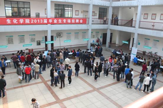 同时还有很多专业教师担当"红娘",在学生和企业间"牵线搭桥",帮助毕业生成功就业。这也成为生化学院在促进就业工作方面的重要法宝。如:生物技术部分专业教师具有很强的科研能力,薛正莲、杨超英、赵世光、魏明等教师和许多企业都有着良好的技术合作,他们常常利用自己为一些企业进行科研开发的机会,积极推荐合适的生物专业学生到企业就业。近年已成功推荐了20多名学生到国家级农业旅游示范点大浦乡村世界、中粮集团、皖北药业等企业成功就业。