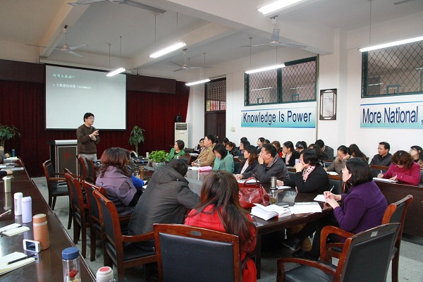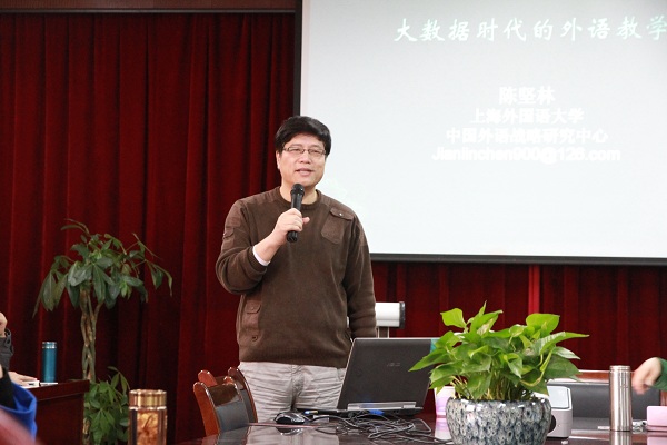 11月26日下午,中国外语战略研究中心主任、上海外国语大学博导、我校客座教授陈坚林应邀来校作了题为“大数据时代的外语教学”的学术讲座。讲座由外国语学院院长刘进教授主持,外国语学院全体教师聆听了讲座。