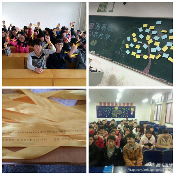 此次活动得到了教师、同学们的广泛关注。同学们在微博上写下了感恩之语,通过网络发表感恩之言,传递正能量;还有部分同学利用电话、短信抒发了自己对家人、教师、同学们的感谢。