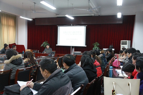 12月3日下午,应外国语学院院长刘进教授的邀请,安徽师范大学外国语学院副院长、教授张德让博士在外国语学院会议室作了题为“文化自觉与翻译研究”的学术报告。报告会由外国语学院翻译研究所所长黄焰结博士主持,外国语学院80多位教师聆听了报告,整个报告持续了2个小时。