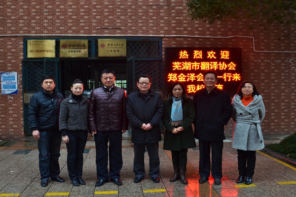 郑金泽对我院近几年来取得的成就表示赞赏。他说,近几年来安徽工程大学外国语学院在办学层次、教学和科研水平等各方面成绩显著,在安徽省翻译界有目共睹,希望双方进一步深入交流,互惠互利,合作共赢。