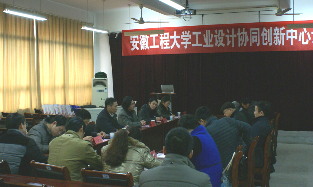 2014年12月11日下午,艺术学院在学院会议室召开了安徽工程大学工业设计协同创新中心论证会。论证会邀请了我校党委常委、副校长李震教授,华东理工大学设计与传媒学院院长、博士生导师程建新教授,芜湖鸠江区区委常委、宣传部长、芜湖国家级广告产业园管委会主任杨士军,芜湖市科技局副局长朱寿发,芜湖市经信委副主任王翔,芜湖市弋江区人社局局长李莉,奇瑞前瞻技术研究院院长陈效华,安徽鑫龙电器股份有限公司董事张祥等高校、政府企业不同领域的专家学者担任专家。艺术学院党委书记刘金斌、院长黄凯、副院长张学东,工业设计系部分老师参加了论证会。会议由中心主任黄凯教授主持。