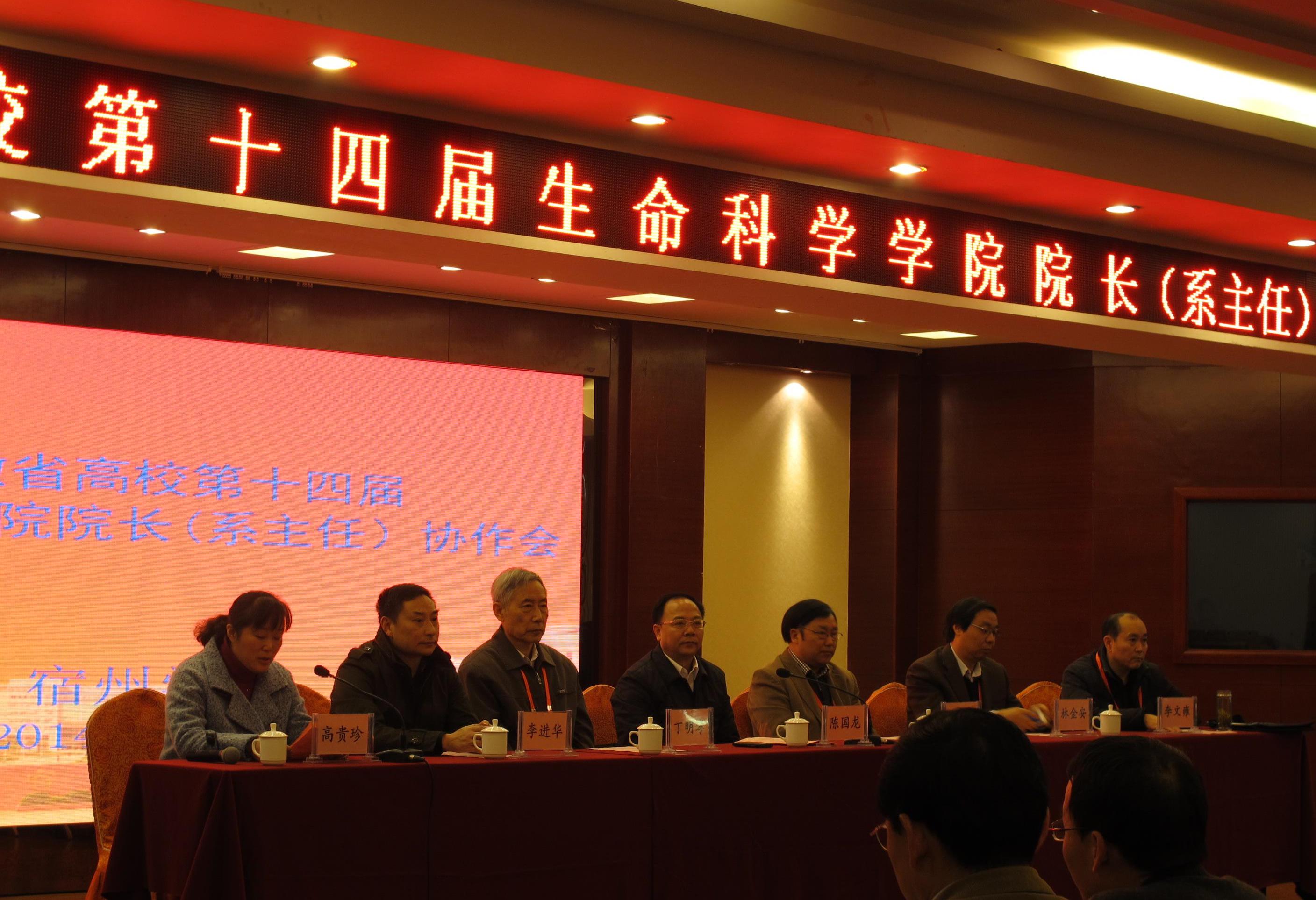 12月5日至7日,安徽省高校第十四届生命科学学院院长(系主任)协作会在宿州学院隆重召开。此次会议是我省高等院校生命科学学院(系)院长(主任)教学管理经验交流大会,也是从事生物科学、生物工程、生物技术及其相关专业教学的教师们科研、教学经验交流大会。会议由宿州学院生物与食品工程学院院长高贵珍教授主持,宿州学院党委书记陈国龙教授致辞。我校生化学院党委书记王弘、院长徐建平、副院长薛正莲、陶玉贵以及相关专业系主任、教研室负责人参加了本次会议。