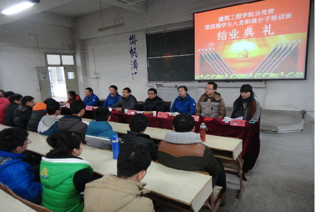 12月25日下午,建筑工程学院分党校第四期入党积极分子培训班结业典礼在2教106举行。建筑工程学院党委书记徐达奇、副书记李烨出席结业典礼,团委副书记、学生党支部书记、全体辅导员及本期入党积极分子培训班全体学员参加。结业典礼由本期培训班班主任刘余霞主持。