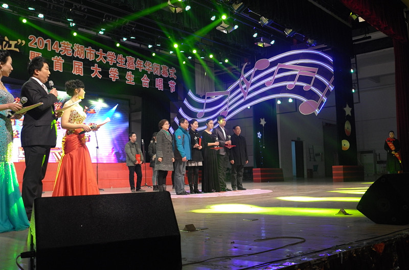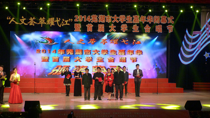 12月27日晚,“人文荟萃耀弋江”——2014年芜湖市大学生嘉年华闭幕式暨首届大学生合唱节在安师大花津校区大礼堂隆重举行。此次晚会受到市委领导及芜湖各高校领导的高度重视,我校党委副书记苏国红在校团委书记刘一的陪同下应邀出席晚会,并为获奖单位颁奖。