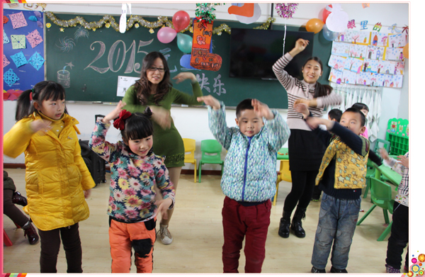 老师们提前布置校园环境,拉花、彩带、气球把教室装扮得分外美丽,充满了新年的喜庆气氛。