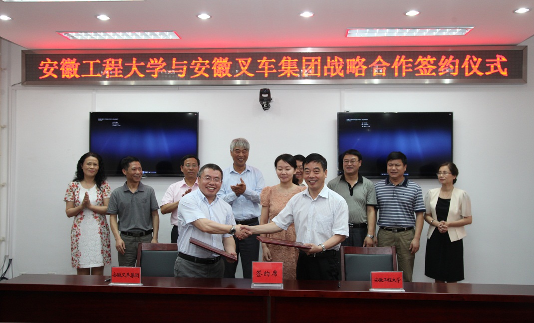 我校与世界工业车辆八强企业——安徽叉车集团有限责任公司签订战略合作协议。校企在学生联合培养、在职人员学历学位教育、实习就业基地、嵌入式实验室、产学研合作、设立奖学金、开展学科技能竞赛等方面展开深入合作,取得一系列成果,成为探索校企合作新模式的一个重要举措。