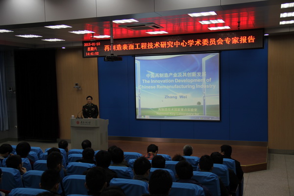 下午,专家学术报告会如期举行,张伟、贺跃辉、潘冶和薛卫昌等专家分别作了学术报告。四位专家从国家政策解读、标准制定、基础研究、应用开发及成果转化情况等方面介绍了再制造领域的国家支持力度、研究最新成就、产业化现状和市场前景,报告信息量大、内容丰富,让在座的师生深受启发。朱协彬感谢专家的精彩报告,表示要务实建立校企合作新模式,建成再制造科技创新人才队伍,打造材料科学与工程学科学术新高地,推进再制造成果转化、工程化和产业化步伐。