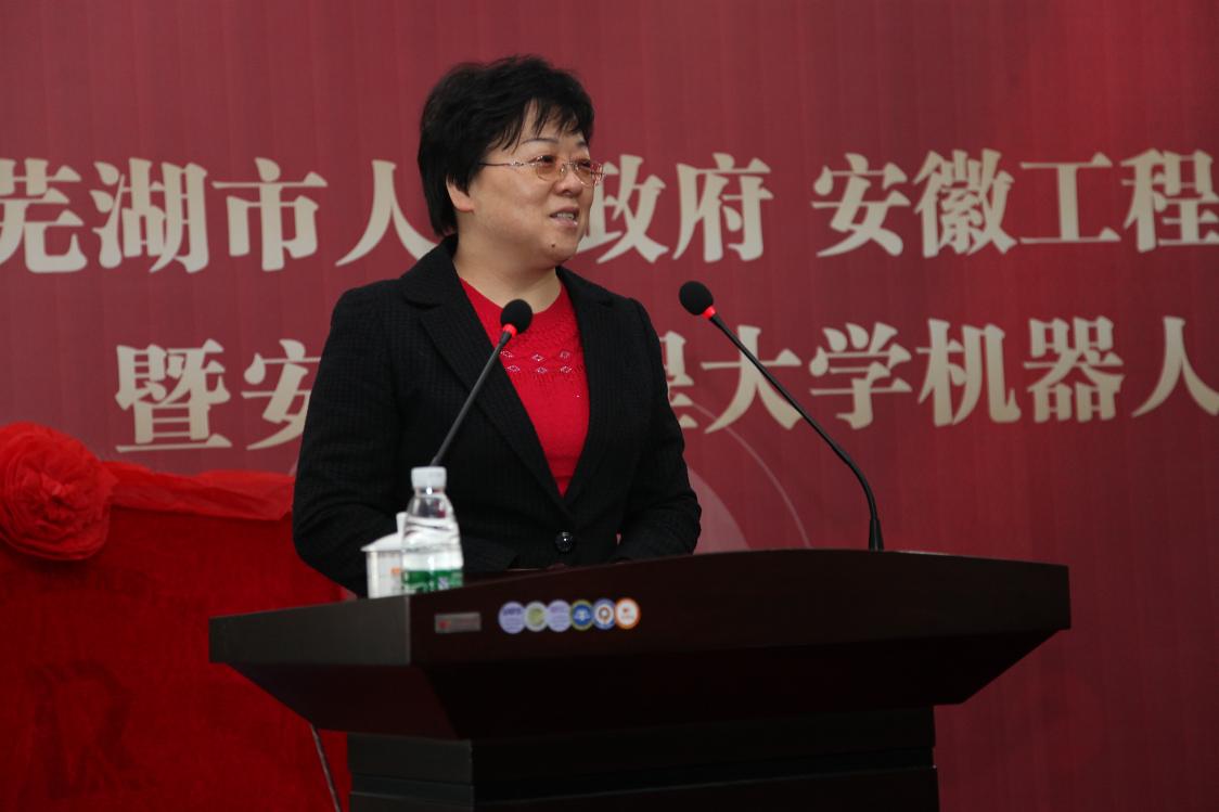 罗平代表省科技厅对市、校战略合作协议的签订、对安徽工程大学机器人产业技术研究院的揭牌表示祝贺。她指出,全省深入实施创新驱动发展战略,加速创新安徽建设,一批新型产学研合作的研究院实体的建立,将对推进资源整合、加快知识成果转化、推进新型产业发展起到积极作用。市、校战略合作协议的签订,机器人产业技术研究院的成立为芜湖市科技创新注入了新的活力,为安徽工程大学迈向一流的应用型大学、提升师生创新创业激情、更好地服务经济社会发展创造了条件。本次活动也是推进大社会创业、万众创新的新举措。希望市政府能加强政策引导,通过开放联合、资源整合、产学研合作等多种形式来发展机器人产业技术研究院,推进投资主体的多元化、资源配置的市场化、管理体制的企业化、研发方向的系统化、人才队伍的国际化,促进产业、科技、资本、人才的融合,加快科技优势向产业优势、科技优势的转化。省科技厅将一如既往地支持芜湖市和驻芜高校的科技创新。预祝市校战略合作取得更大成果,祝机器人产业技术研究院为芜湖机器人产业发展贡献更大力量。