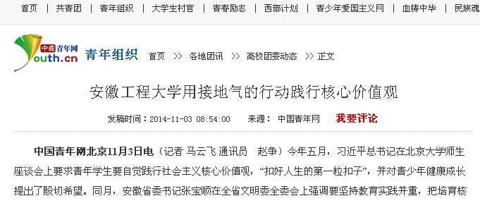 共青团连云港市委官网:www.lyggqt.gov.cn/news_content.asp?articleid=8013安徽工程大学用接地气的行动践行核心价值观