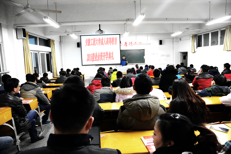 3月10日晚,安徽工程大学成人高等教育2015级校本部业余教学班新生开学典礼在4号教学楼213教室举行,继续教育学院学历部李德才主持。