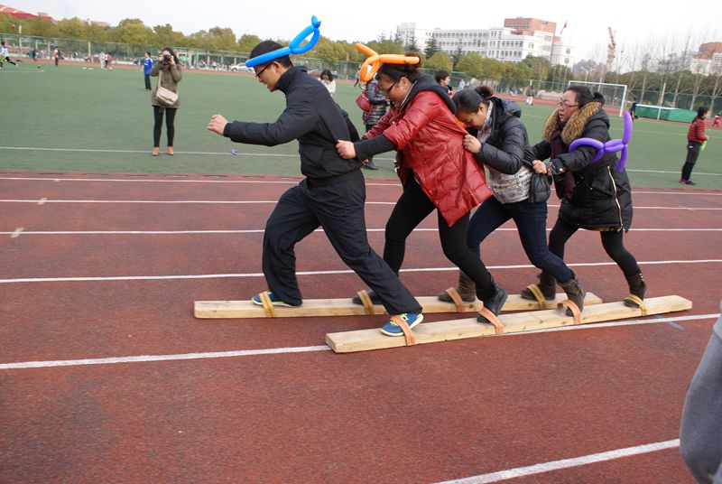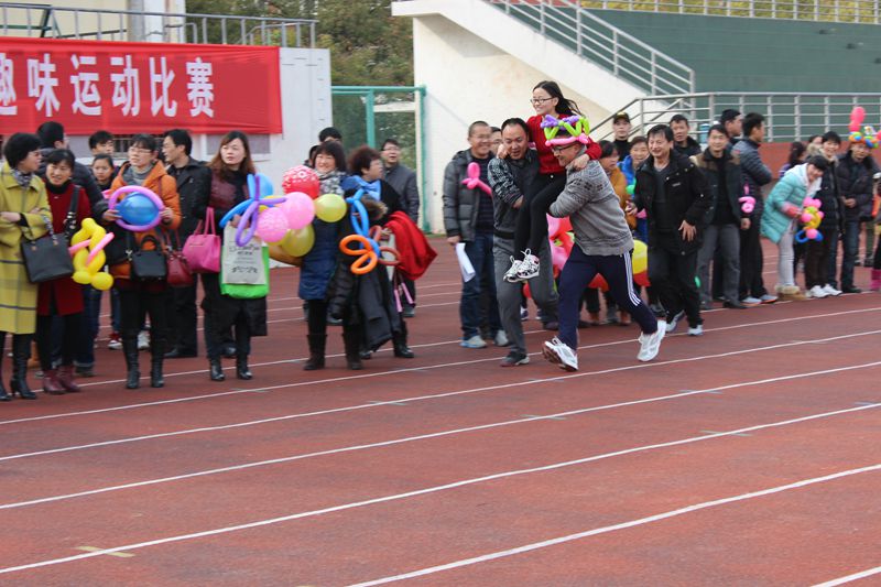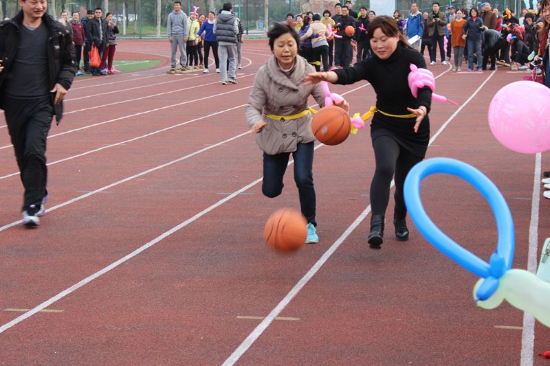 学校党政领导十分关心本次活动,党委副书记苏国红亲自过问活动安排并代表学校向全校女教职工致以节日问候。在外学习的校工会主席王河通过电话关心比赛情况并向全校女职工送上了节日的祝福。校体委副主任、体育学院党委书记文才新,校工会副主席、女工委主任张寅红也到场为各队选手助威加油。趣味比赛紧紧围绕活动主题,项目构思巧妙生动,参赛队员们整装待发。随着比赛哨声吹响,精心装扮的各参赛队员依次完成了两人三足跑、双人协助拍篮球跑、双人背夹排球跑、双人跳绳跑、抬花轿跑和齐心协力走等比赛程序。本次比赛男教工表现了很高的参与热情,同时各参赛队经过充满创意的气球装扮,使比赛场面和比赛环节更显温馨喜庆、妙趣欢乐。观众笑声、助威声此起彼伏,现场气氛和谐欢快。各学院、机关党委及相关部门领导高度重视本次比赛,不仅亲临比赛现场为队员加油,有的还亲自上场参加比赛,有近600名教职工参与了本次活动,比赛期间苏国红等领导还兴致勃勃地组队参与活动,为活动增添了欢乐氛围。
