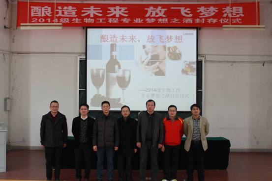 葛飞首先简单介绍了本次活动的目的及过程。2014级新生入学时,生物工程专业教研室便安排了这次特别的活动,即所有同学选用自己喜欢的一种水果酿造成美酒。同学们在专业教师的指导下亲自动手完成每个酿造环节,经过一段时间的发酵,一瓶瓶美酒终于呈现在大家面前,同学们决定将这些美酒和自己的梦想先一起封存,直到大学毕业时再拿出来分享,放飞自己的梦想。