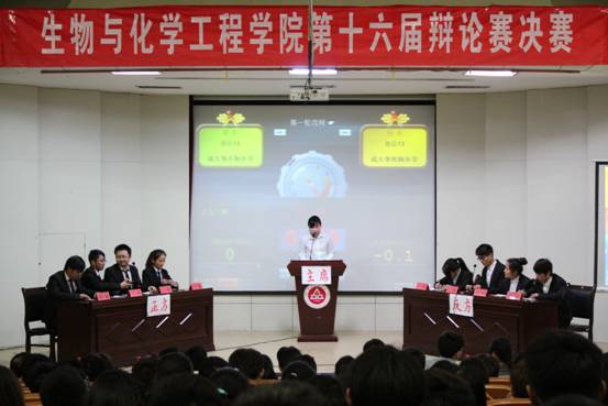 3月23日晚,生物与化学工程学院第十六届辩论赛决赛在学术报告厅举办,生化学院党委副书记章兵、团委副书记和部分辅导员应邀出席比赛。来自化工14级,环工14级,食品14级和食品13级的四只队伍凭借前期的出色表现进入决赛环节。